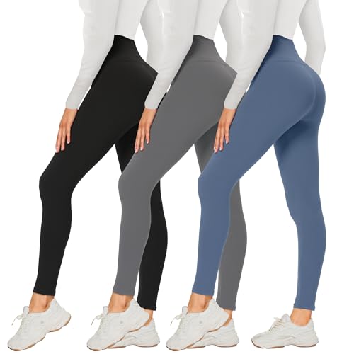DDOBB 3 Pack Leggings for Women High Waisted Black Leggings Tummy Control Stretchy Pants Trousers for Gym Fitness Yoga Running Regular&Plus Size(Black + Dark Gray + Morandi Blue)