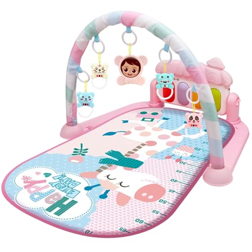 Baby Play Mat for Floor, 76cm Cartoon Animals Pattern Baby Floor Play Mats with Rattle Pendants, Infant Piano Gym Mats, Tummy Time Mat Toys for 0-12 Months Babies (Pink)