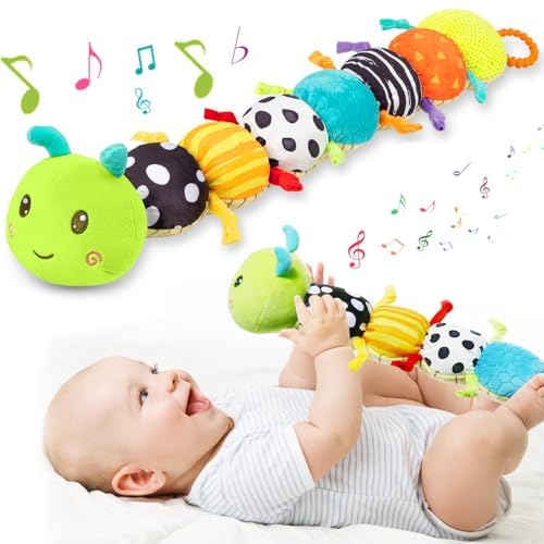 Baby Toys 0-6 Months – Soft Caterpillar Toy with Music & Rattle, Newborn Tummy Time Toys & Sensory Toys, Crinkle Rattle Plush Musical Animal for Infants, Early Development Gifts for Boys & Girls