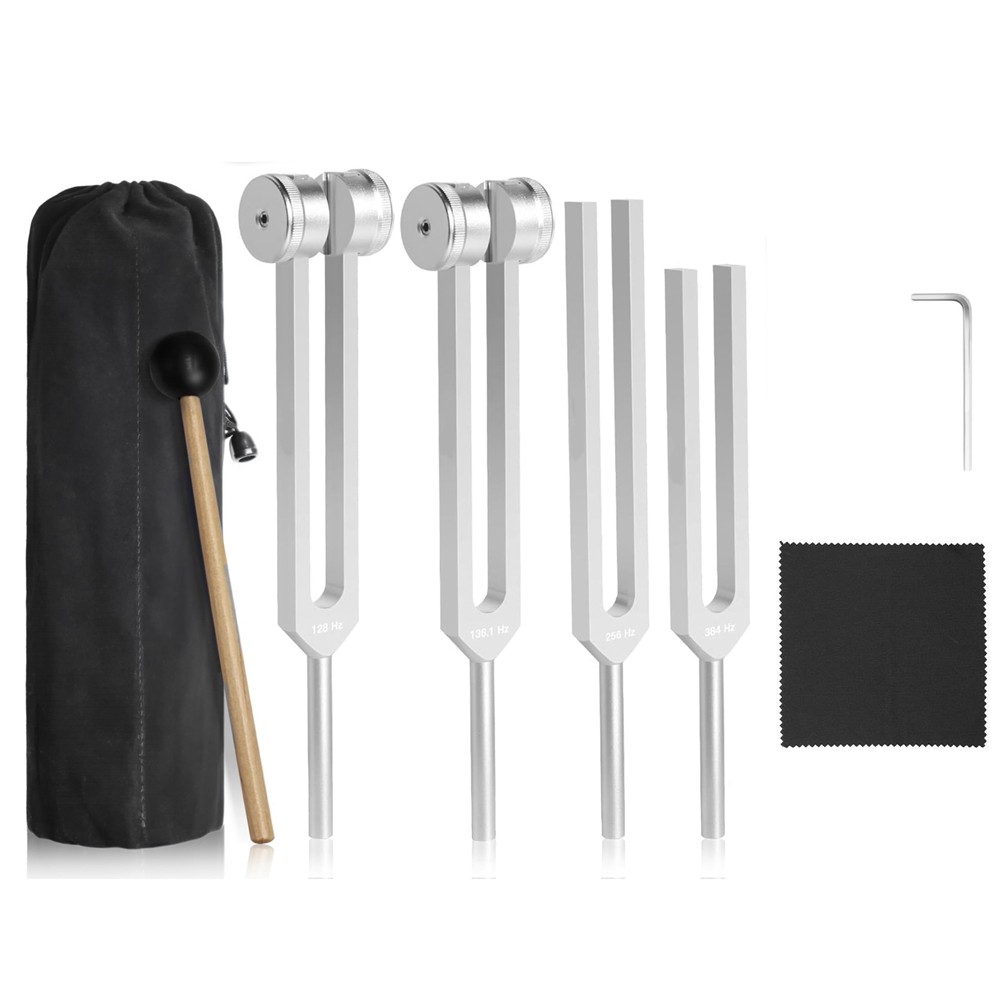 Tuning Forks for Healing Set (128Hz, 136.1Hz, 256Hz, 384Hz) - Weighted & Unweighted Tuning Forks with a Rubber Mallet - Chakra Sound Therapy Instruments with a Bag, Healing Gifts for Women & Men (10)
