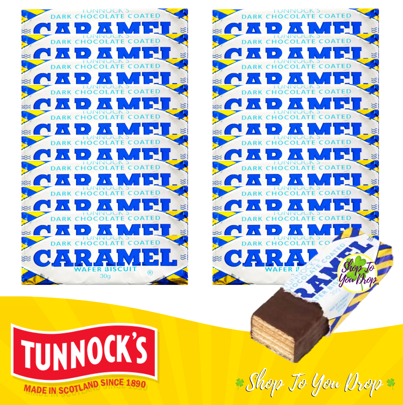 20 TUNNOCKS CARAMEL WAFERS - 10 EACH Biscuits Milk Dark Chocolate Snack Bars🎁🍫