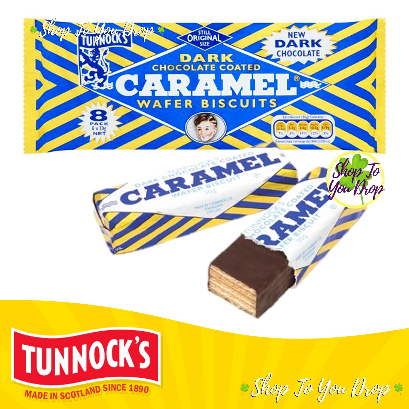 TUNNOCKS DARK CHOCOLATE CARAMEL WAFER Biscuits 1 PACK 8 x 30g Wafers Snack🎁🍫