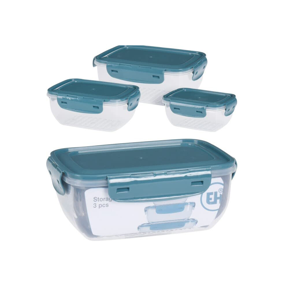 3pcs Food Storage Containers with Lids Airtight & Reusable â Plastic Tupperware Set BPA-Free 100% Leak Proof Freezer Microwave Safe Square Stackable