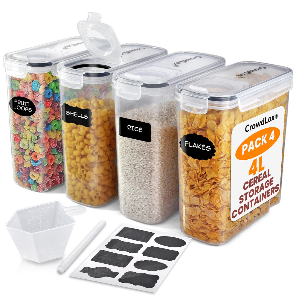 CrowdLox Cereal Storage Containers 4L Food Grade and BPA Free Tupperware Sets with Lids and Labels Kitchen Storage & Organisation Food Containers