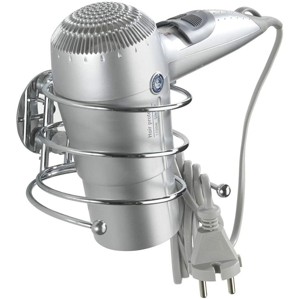 Wenko Turbo-Loc Hair Dryer Cable Holder, Fixing Without Drilling - Chrome, Steel