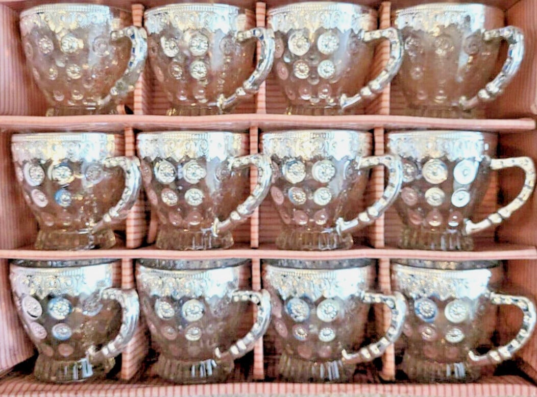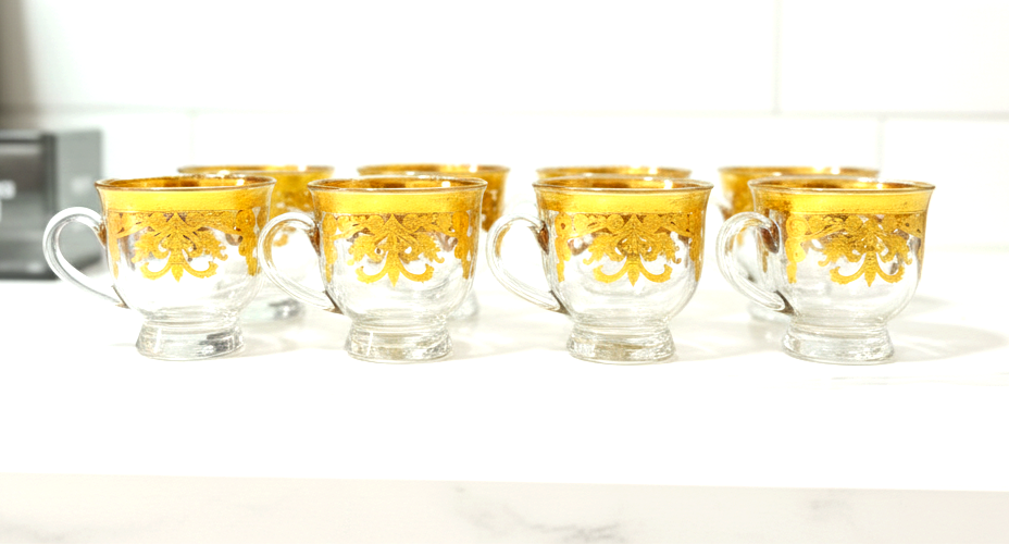 12Pc Turkish / Arabic Tea Cups with Handle Green Herbal Tea/Expresso Shot - Gold