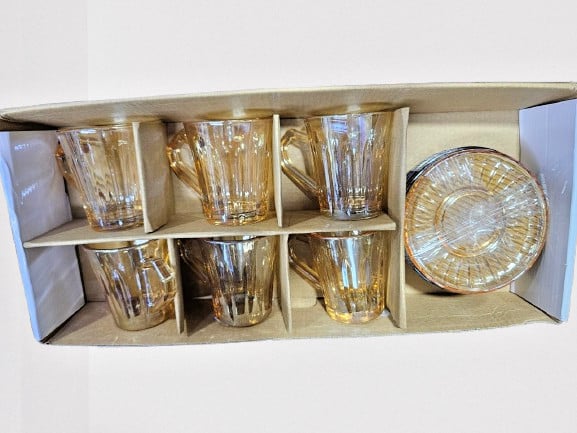 Turkish Glass Tea Set of 6 Cups With Saucer Gold Gift