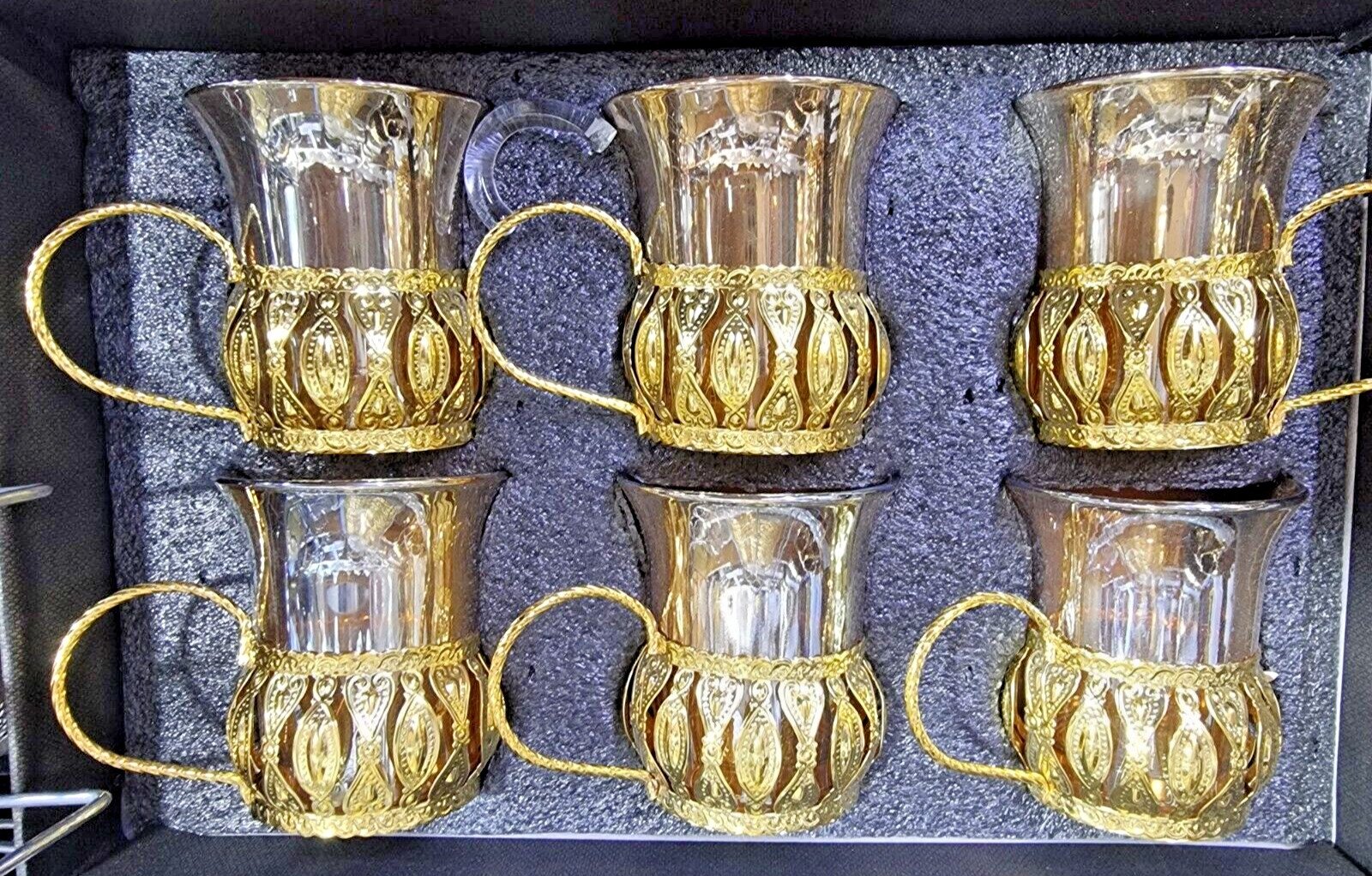 New Turkish Tea Set of 6 With Saucers Gold Stunning Gift