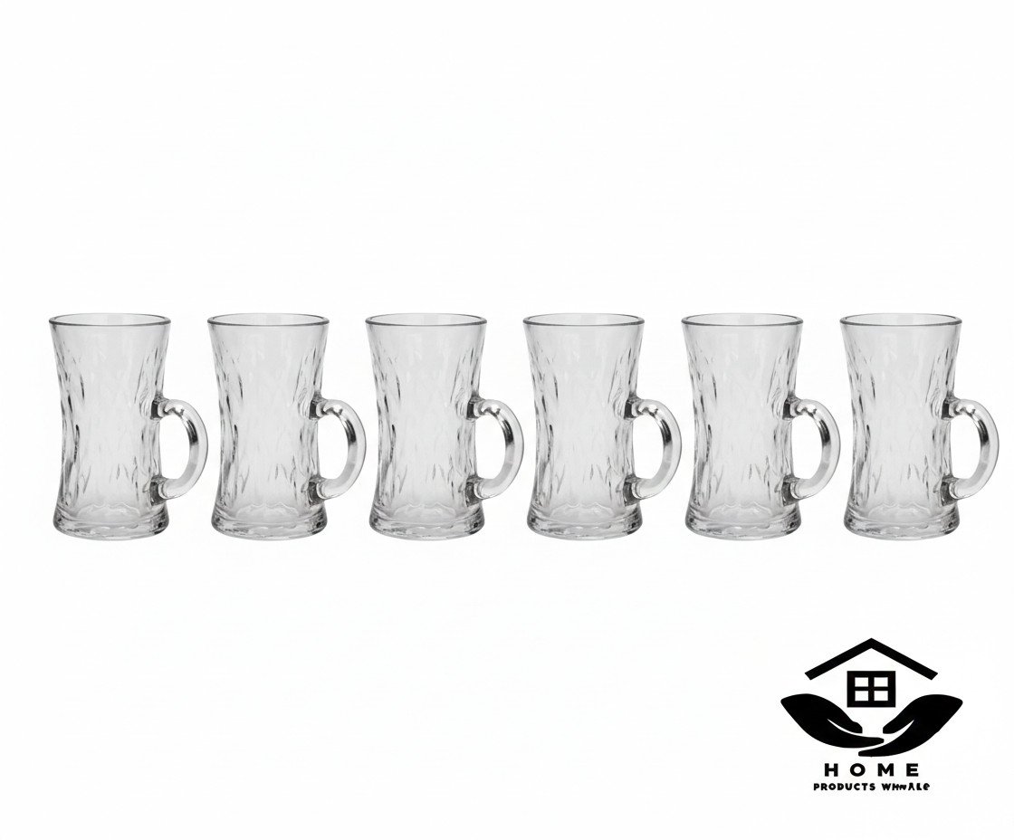 6 x Turkish Tea Glass Cups with Handles – 145ml Clear Glass Set for Tea, Coffee