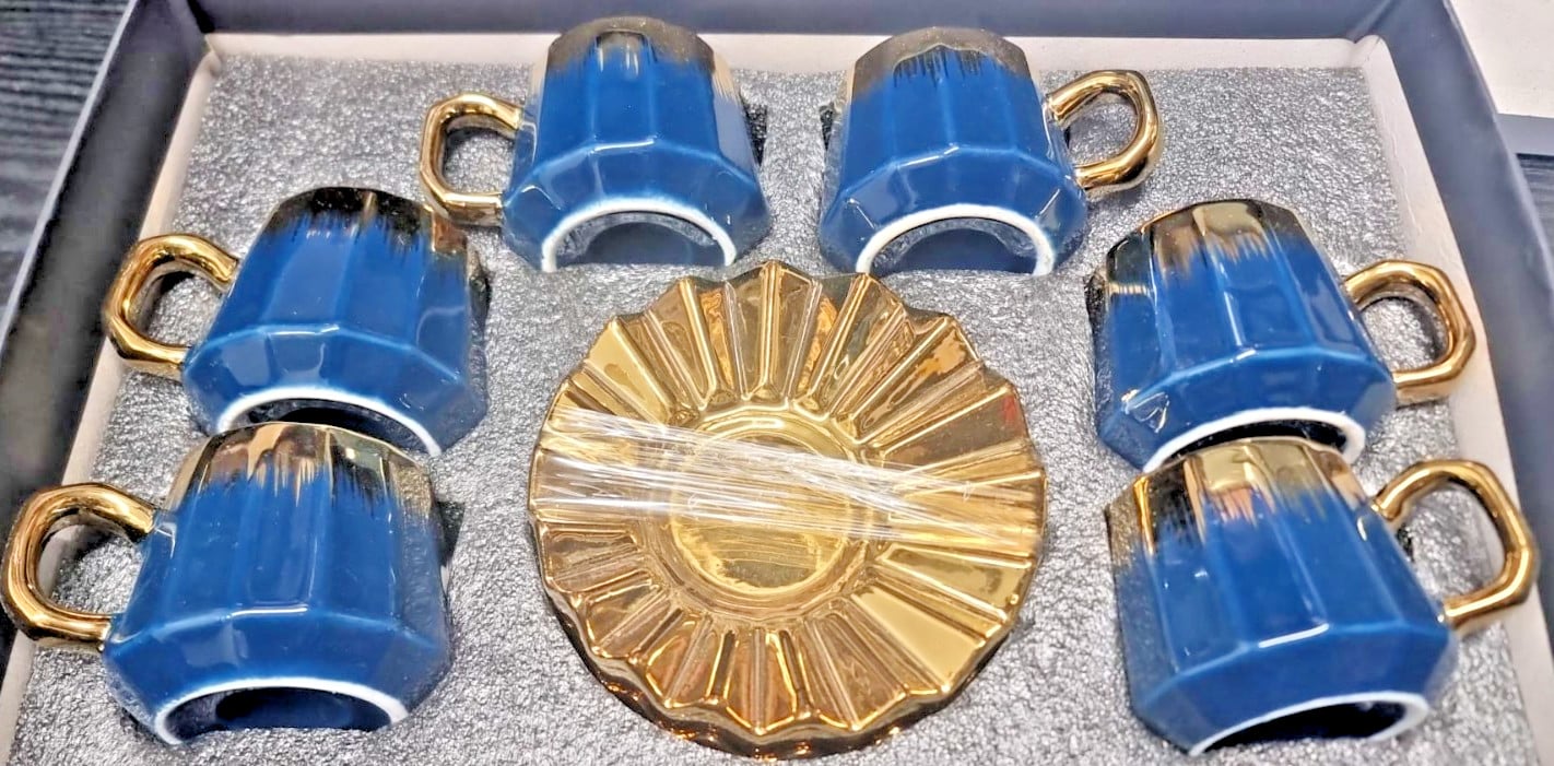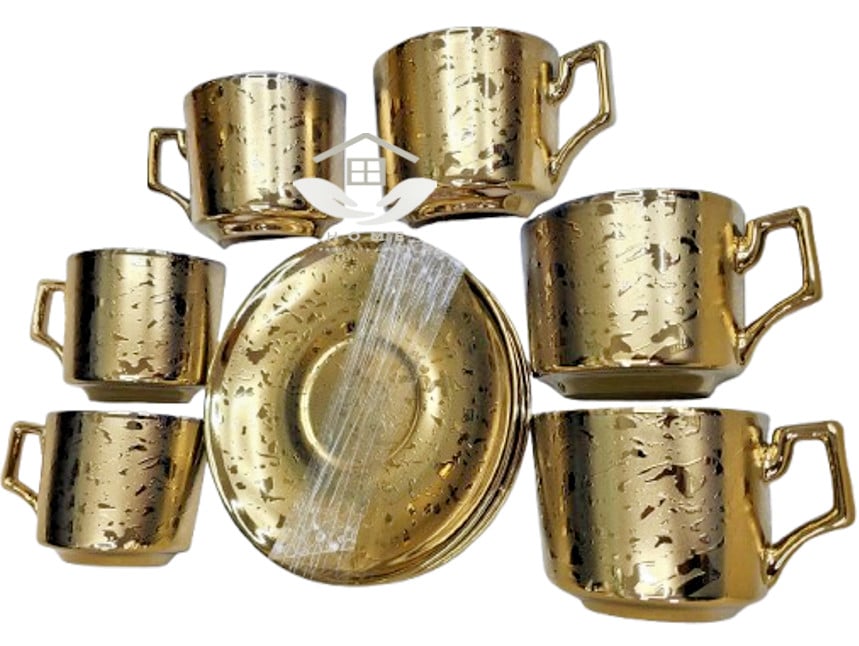 Turkish Arabic Tea Set of 6 Kahwa Cup Saucer Gold Gift