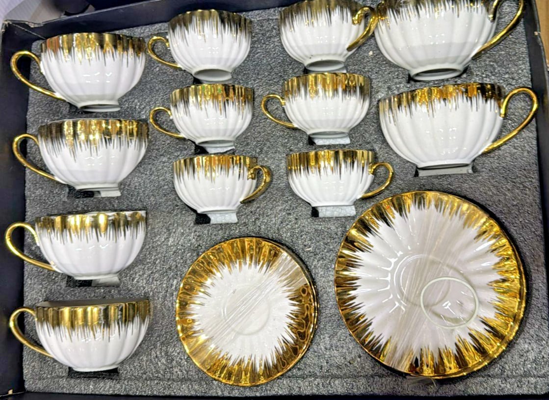 Turkish Arabic Tea Set of 12 Cups With Saucer White Gold Gift