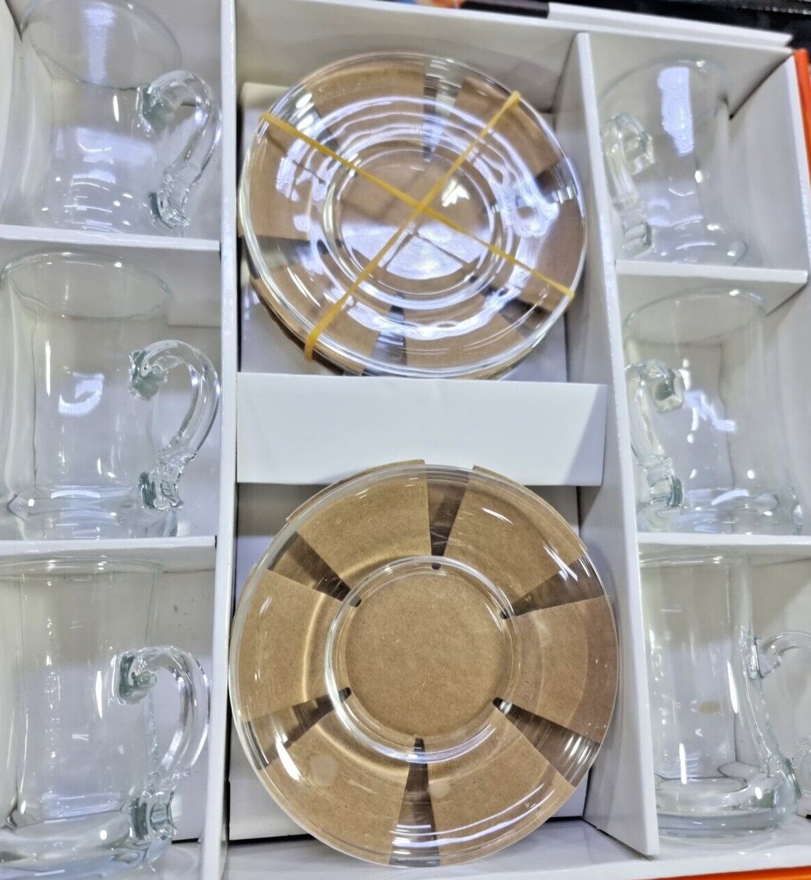 Turkish Tea Set of 6 Kahwa Cups With Saucer Clear Glass Gift