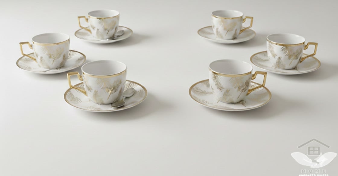 Turkish Tea Set of 6 Cups With Saucer White Gold Coffee Mugs Gift