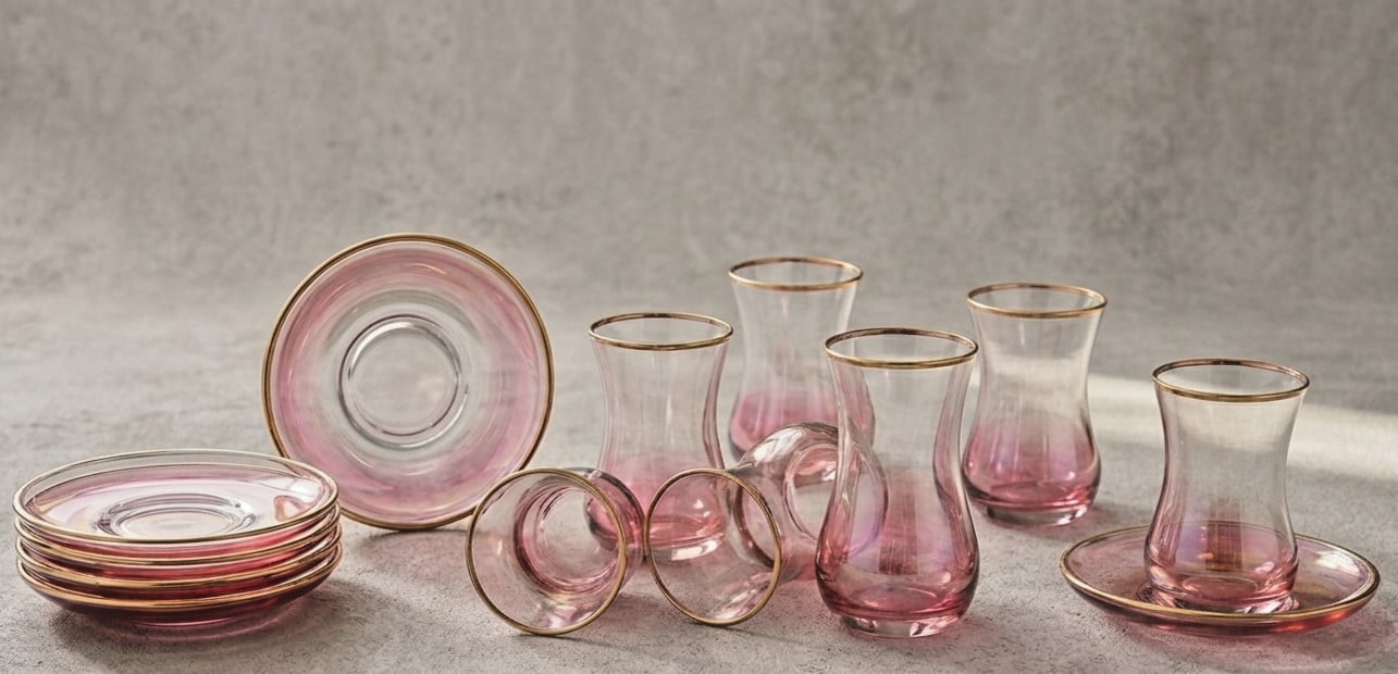115ml Klasik Glass Turkish Tea Cups & Saucers - 6 Sets