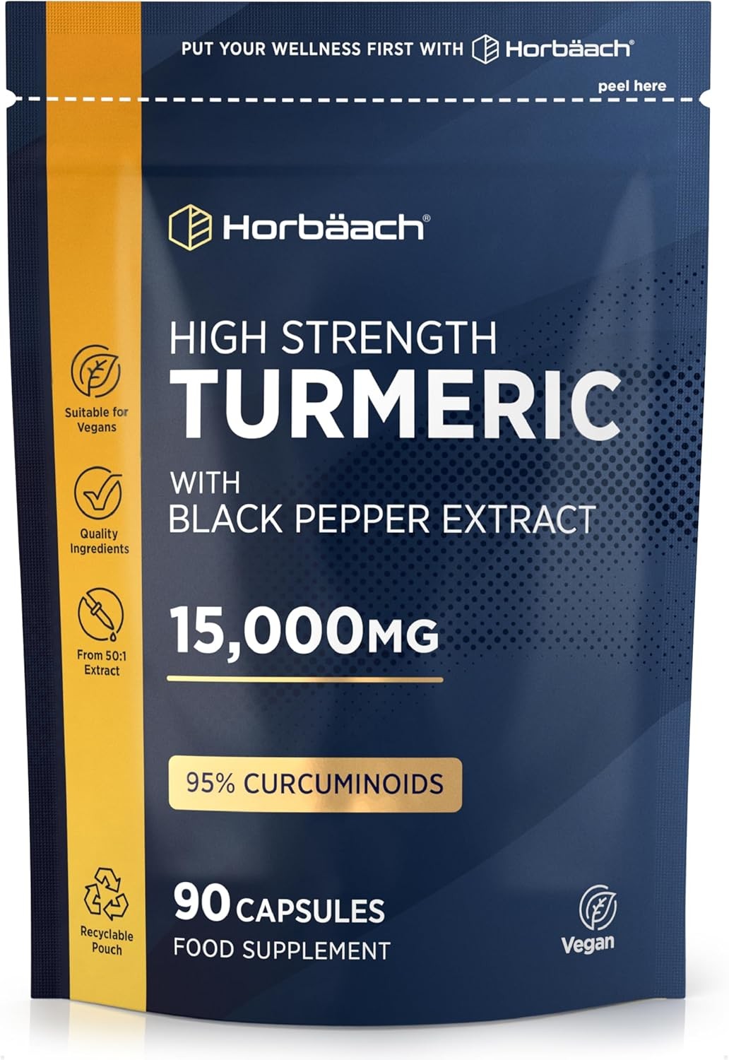 Turmeric and Black Pepper Capsules 15,000mg | High Strength 95% Curcuminoids...