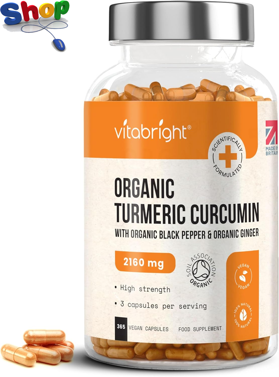 Turmeric and Black Pepper Capsules | 2160mg Dose | 365 Tablets | 4 Month Supply | 3 A Day | Herbal Supplements | High Strength Curcumin | VitaBright Organic Tumeric Supplement