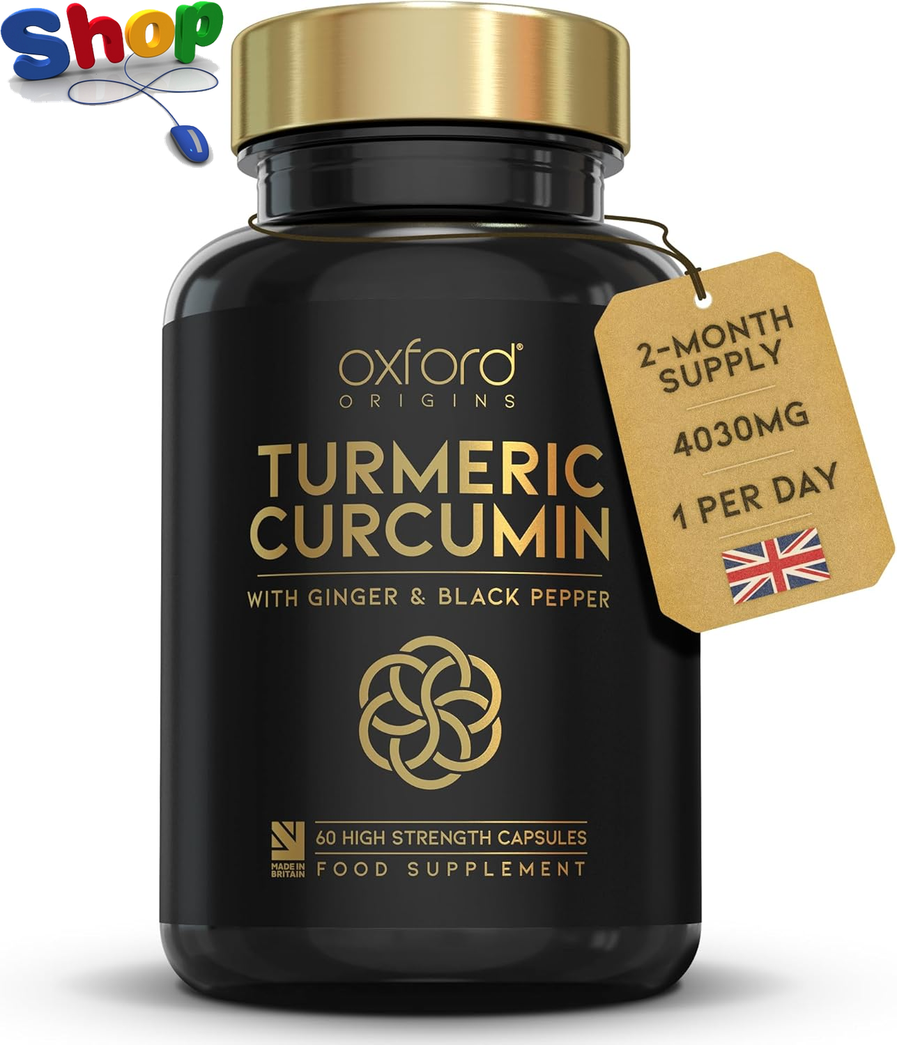 Turmeric 2500mg and Black Pepper 10mg Extract (60 Tablets) 95% Curcumin, UK (V)