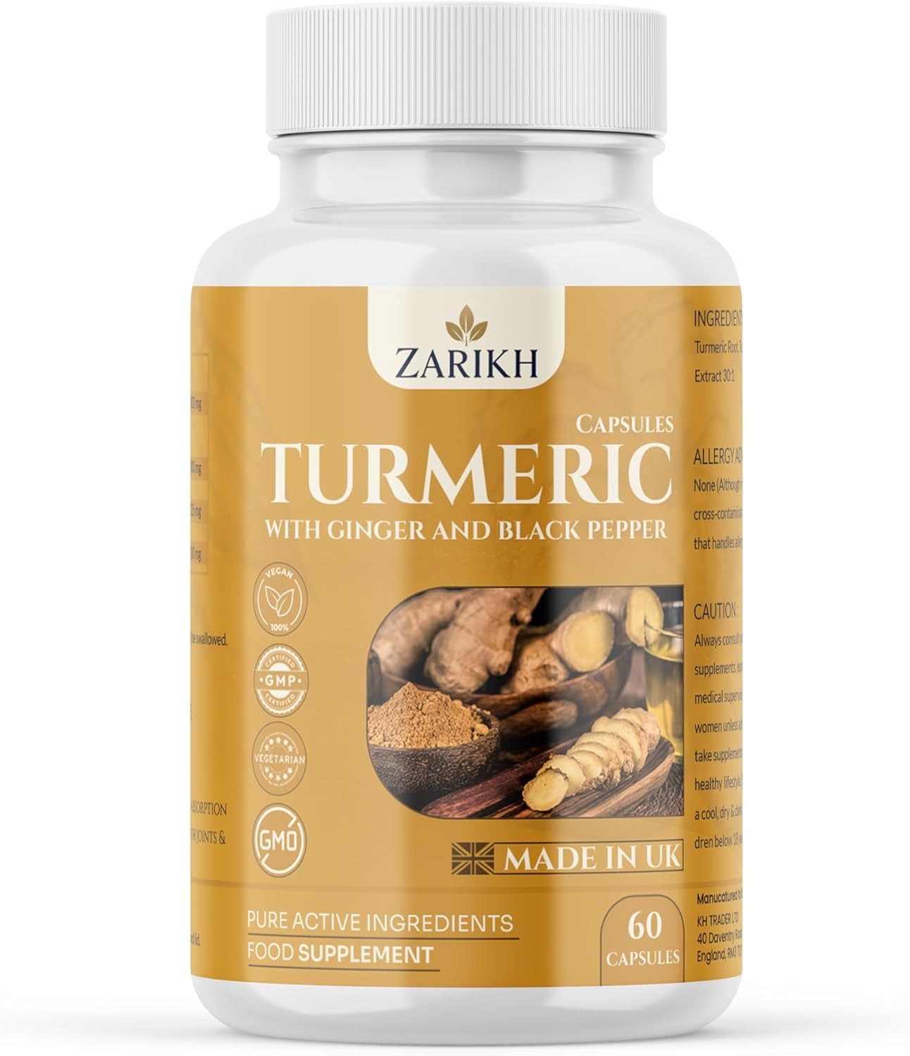 Turmeric 95% Curcumin and Black Pepper Extract 60 Capsules High Strength Tumeric