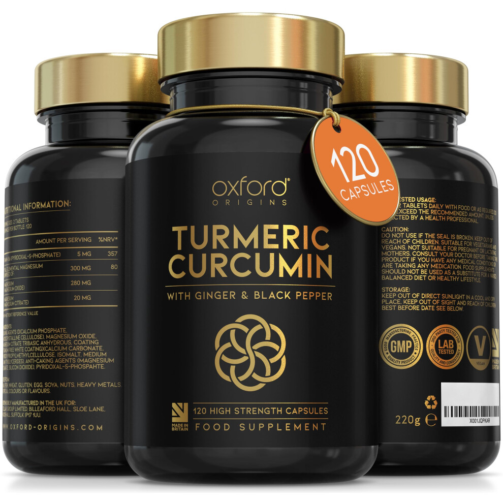 Turmeric and Black Pepper Capsules 1000mg Tablets Daily Curcumin x 120