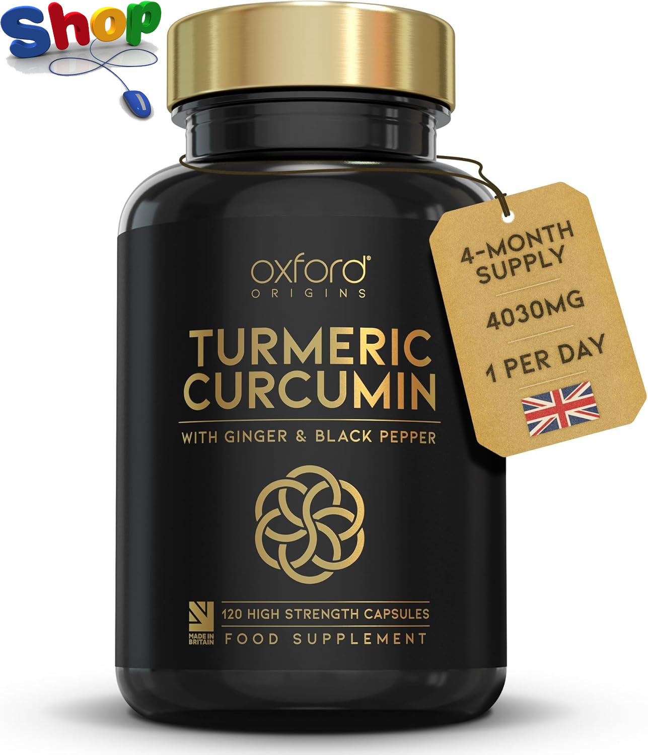 Advanced Turmeric and Black Pepper Capsules 4030mg Made in the UK | ONE per Day Turmeric Supplement with Ginger & Black Pepper | 120 High Strength Tumeric Curcumin Capsules for Joints | 4 Month Supply
