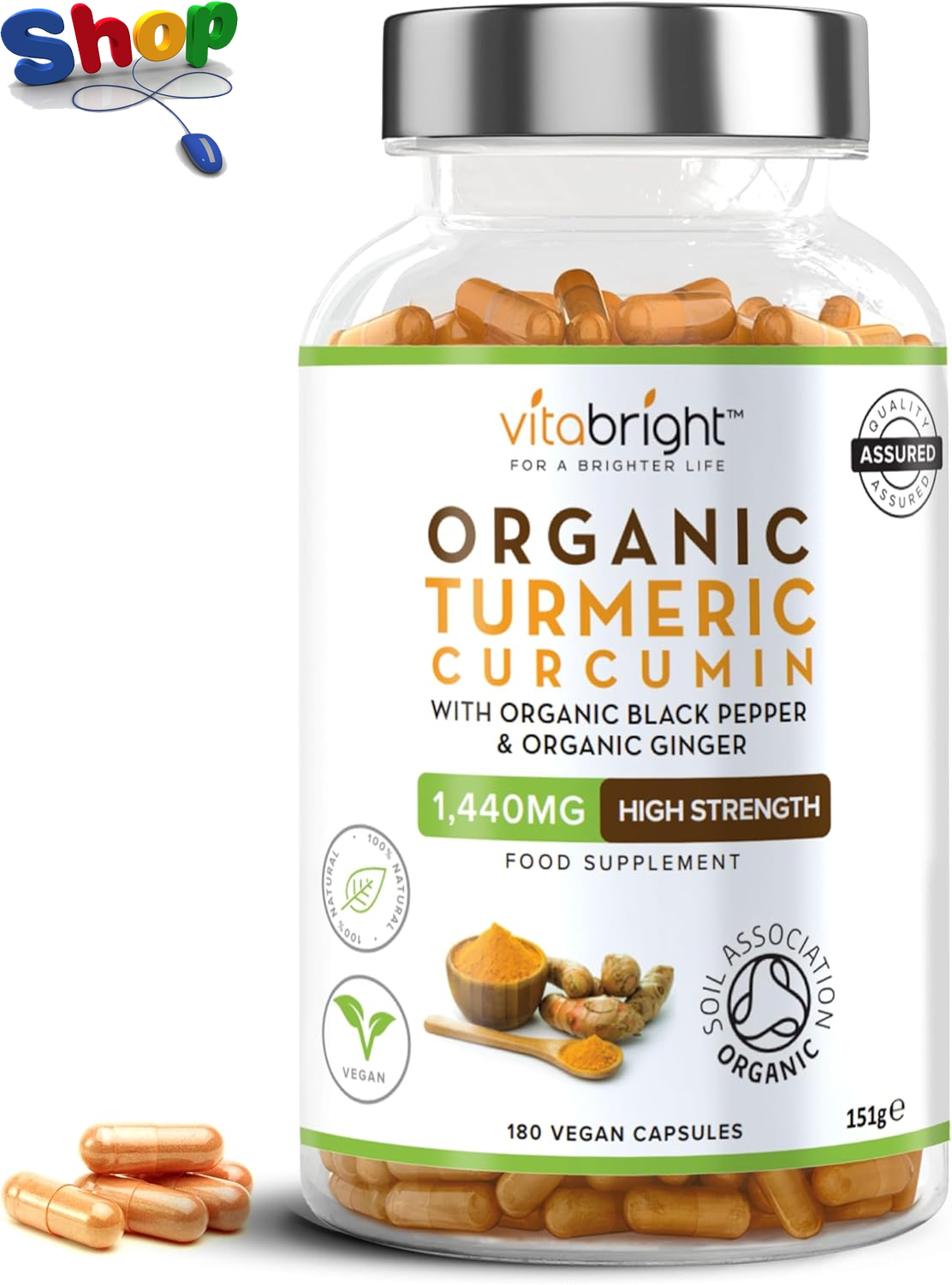 VitaBright Organic Turmeric and Black Pepper Capsules, 180 Tablets, 1440mg Dose