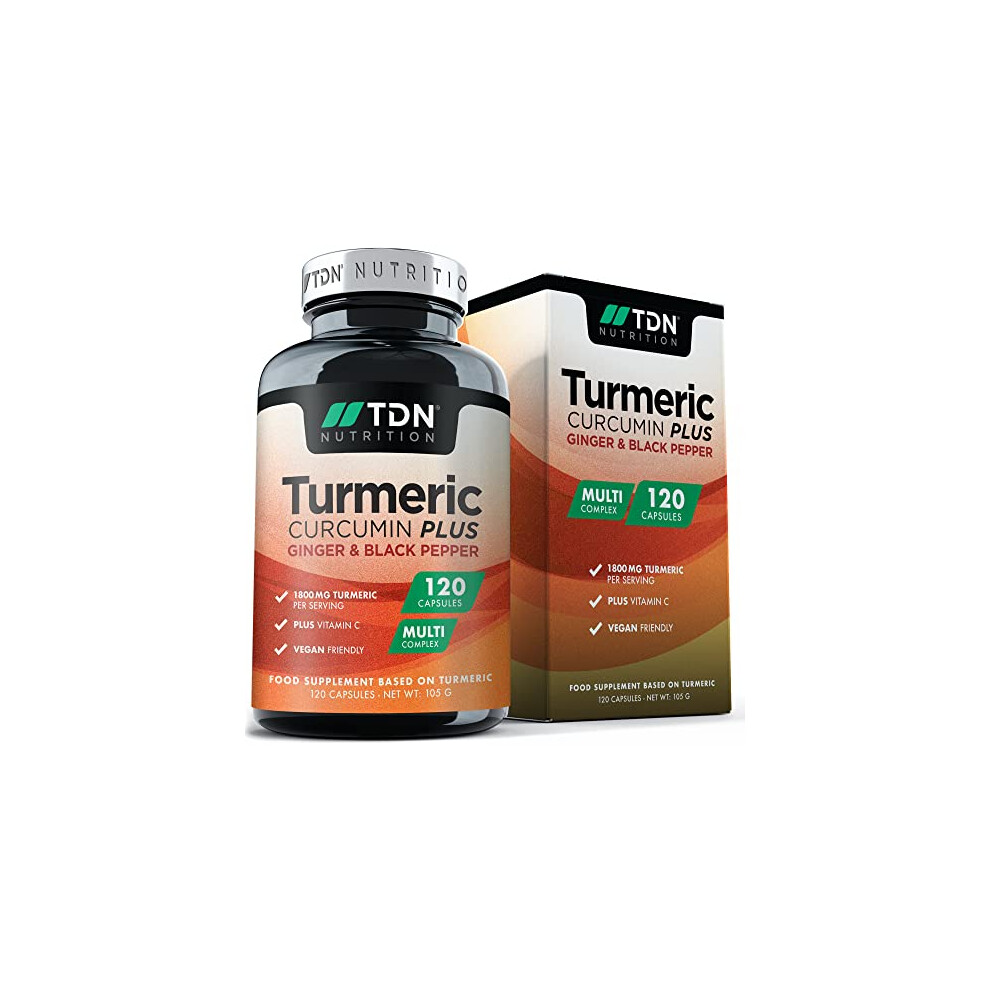 Turmeric and Black Pepper Capsules, Ginger and Vitamin C - Premium Grade High Strength Turmeric Supplements 1800mg - 120 Vegan Curcumin Capsules (not