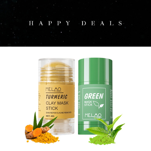 2Pcs Green Tea Cleansing Mask Stick & Turmeric Clay Mask Stick, Acne Blackhead