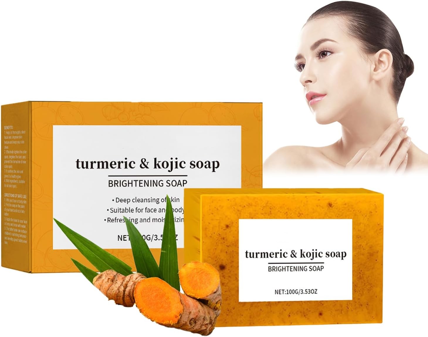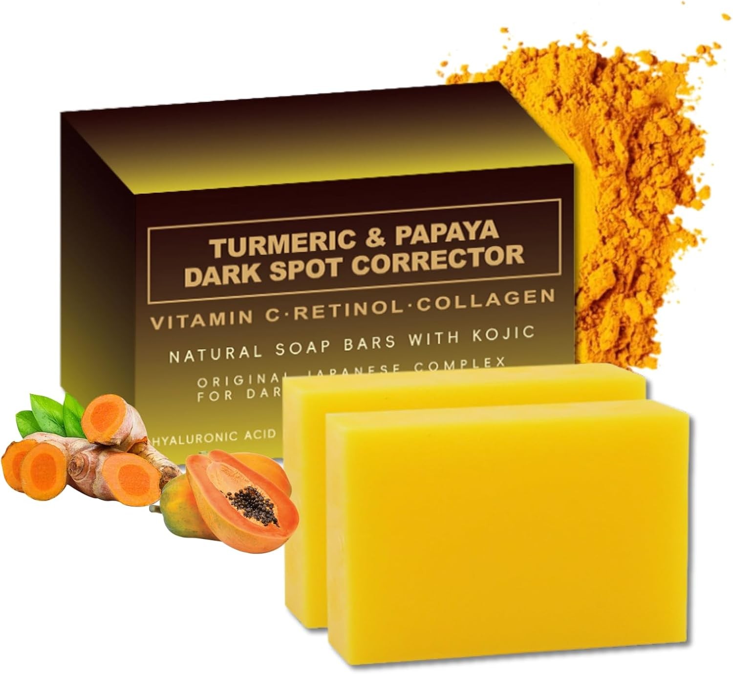 2Pcs Natural Turmeric Soap, Kojic Acid & Turmeric Soap for Dark Spot Remover, O