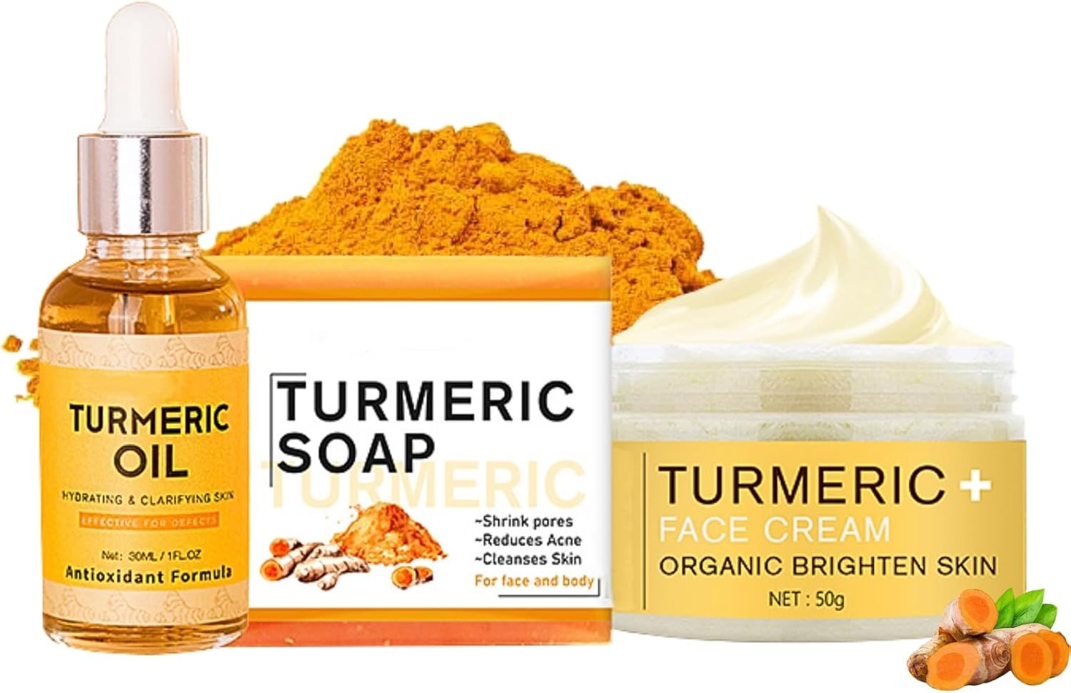 Turmeric Dark Spot Remover Set with Turmeric Soap, Turmeric Face Cream & Turmer