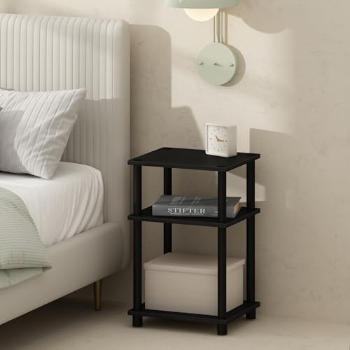 Furinno JUST Night Stand Set of 2, 3-Tier Turn-N-Tube Nightstand, Toolless Bedside Tables, End Table, Side Table with Open Storage for Bedroom, Living Room, Americano