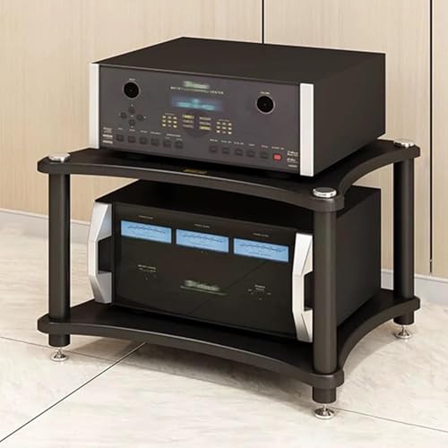 Premium HiFi Stand - 2-Tier Wooden AV Rack, Open Shelf for Turntable, Amplifier & Game Console, Slish Display Tower for Living Room, Black o Fur