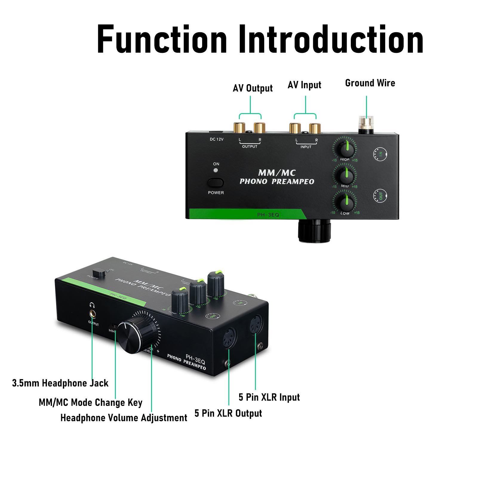 Phono Preamp 3 Band Adjustment Record Player Turntable Amplifier Support MM BAJ