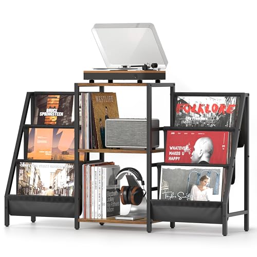 ikkle Record Player Stand with Vinyl Storage, Turntable Stand Holds Up to 500+Albums, 5 Layer Record Player Table with CD Racks for Living Room, Bedroom