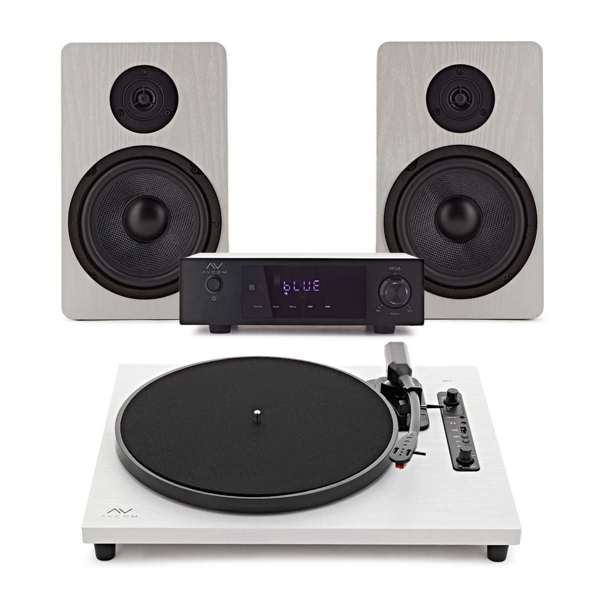 AVCOM Contemporary Turntable with Amplifier and Speakers White