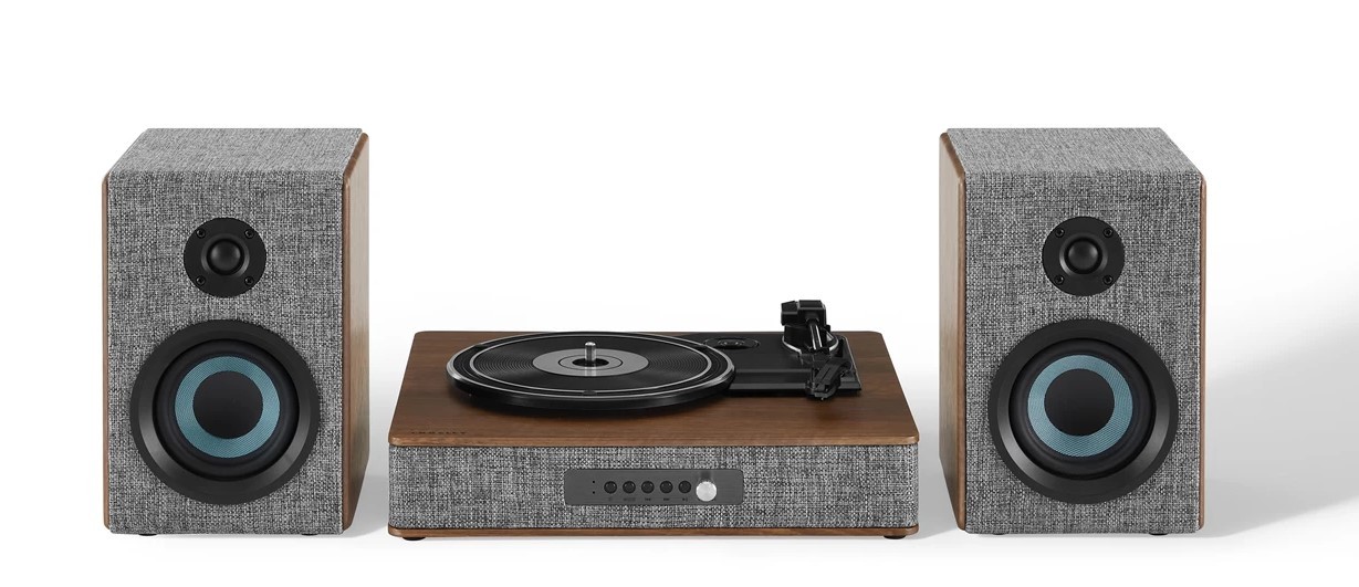 AVCOM Contemporary Turntable with Amplifier and Speakers Walnut