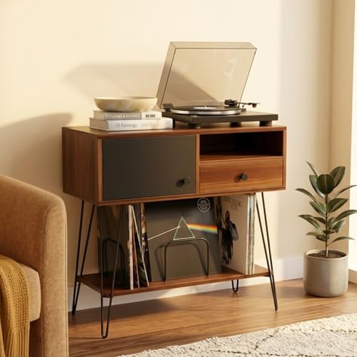 Modern Record Player Stand Cabinet - Corner Entertainment Center with ShelvesRack for Turntables & Vinyl Slish Home Decor for Music Lovers