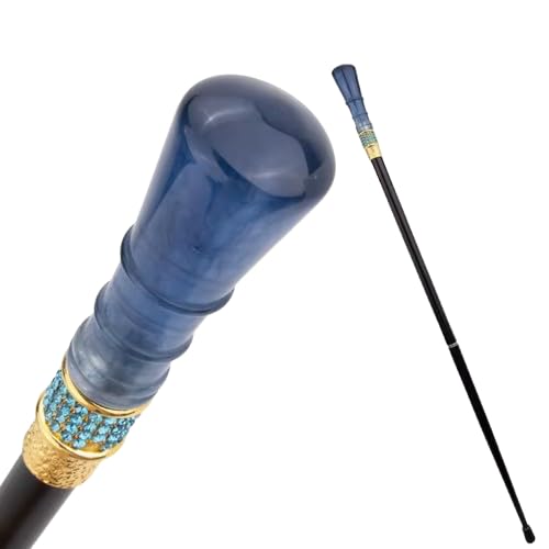 Decorative Walking Cane with Blue Resin Handle, Gold Collar with Turquoise Crystal Embellishments, Black Shaft