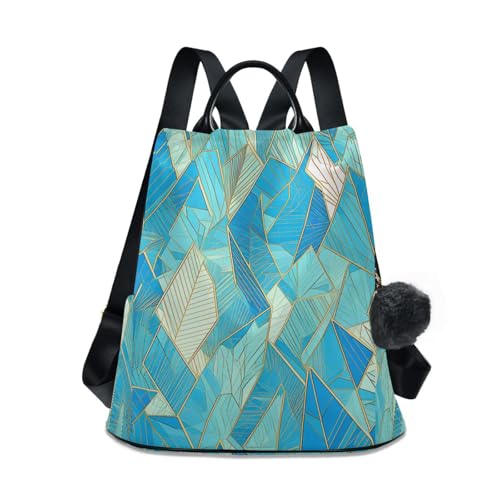 aidingzhi Fashion backpacks for college multipurpose backpack for women travel for Travel, Work, Everyday with Pom-pom keychain Delicate Crystal Turquoise Blue Gold