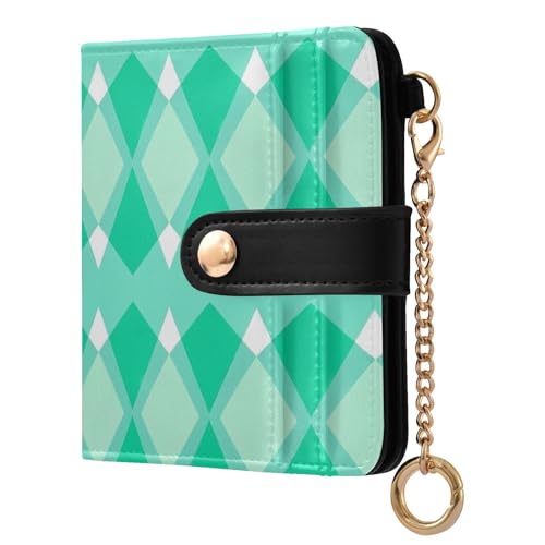 KLL Turquoise Lozenge Rhomb Crystal Women's Compact Folding Wallet Unique Compact PU Leather Wallet for Men Women Travel