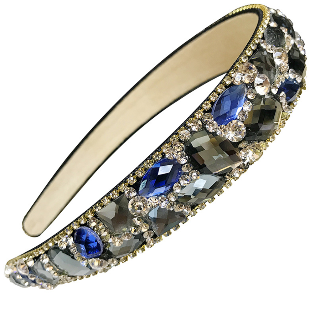 Baroque Style Rhinestone Headband, Elegant Retro Charm For Women, Unique Turquoise Crystal Design, Wedding Party Accessory, Slip Resistant Design, Com
