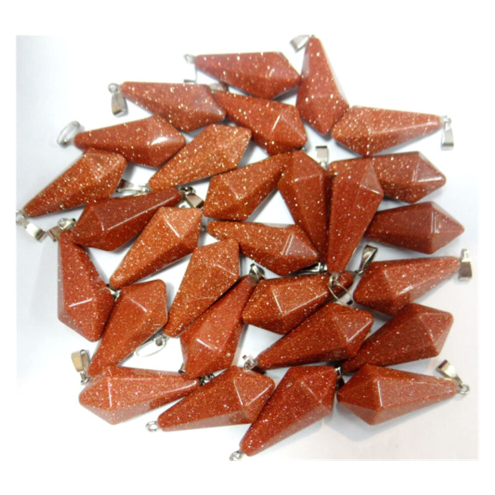 Natural Stone Turquoise Quartz Crystal Tiger Eye Opal Pendulum Hexagonal Pyramid Pendant for DIY Jewelry Making Necklace 12 Pieces Gold Sand Stone.