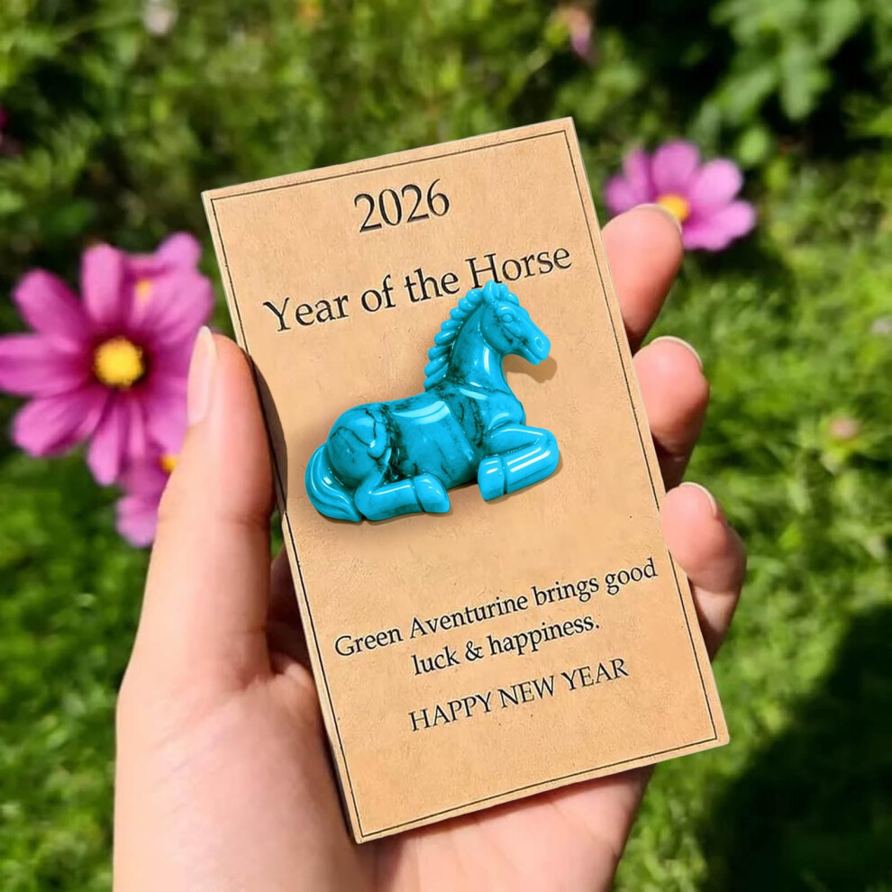 1PC Handmade Natural Turquoise Crystal Horse Figurine with Card â Mini Statue Decor, Symbol of Health & Smooth Journeys, Meaningful New Year Gift