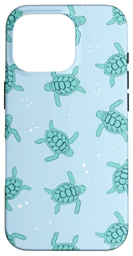 Blue Sea Turtle Pattern Preppy Turtles Retro Summer Beach Case for iPhone 16 Pro