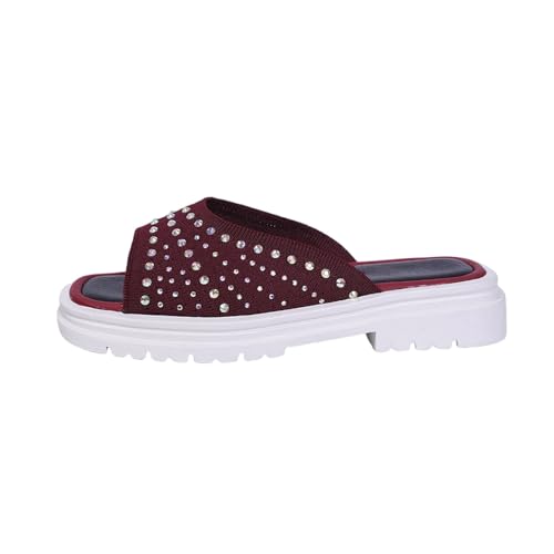 Uwdiohq Women'S Summer New Thick Bottom One Foot Stirrup Fashion Fish Exposed Toe Mouth Beach Slippers Turtle For Women (Red, 7.5) Flip Flops Womens Size 5 Ergonomic Glitter Black Pink Sparkly