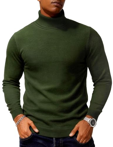 COOFANDY Mens Jumpers Turtleneck Sweater Roll Neck Tops for Men Turtle Neck Sweaters Long Sleeve Polo Neck Jumpers Lightweight Winter Jumper Pullover Army Green L