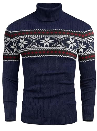 Belovecol Mens Turtleneck Tops Slim Fit High Roll Neck Jumpers Warm Winter Turtle Neck Pullover Sweaters, Dark Blue, M
