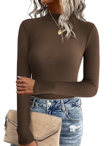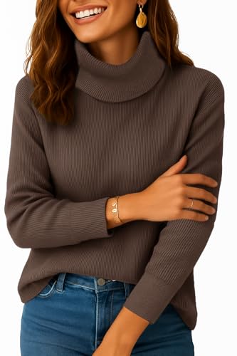 Zeagoo Women's Jumpers Long Sleeve Tops Turtle Neck Sweaters Casual Solid Pullover Stretch Lightweight Sweatshirts Brown XXL