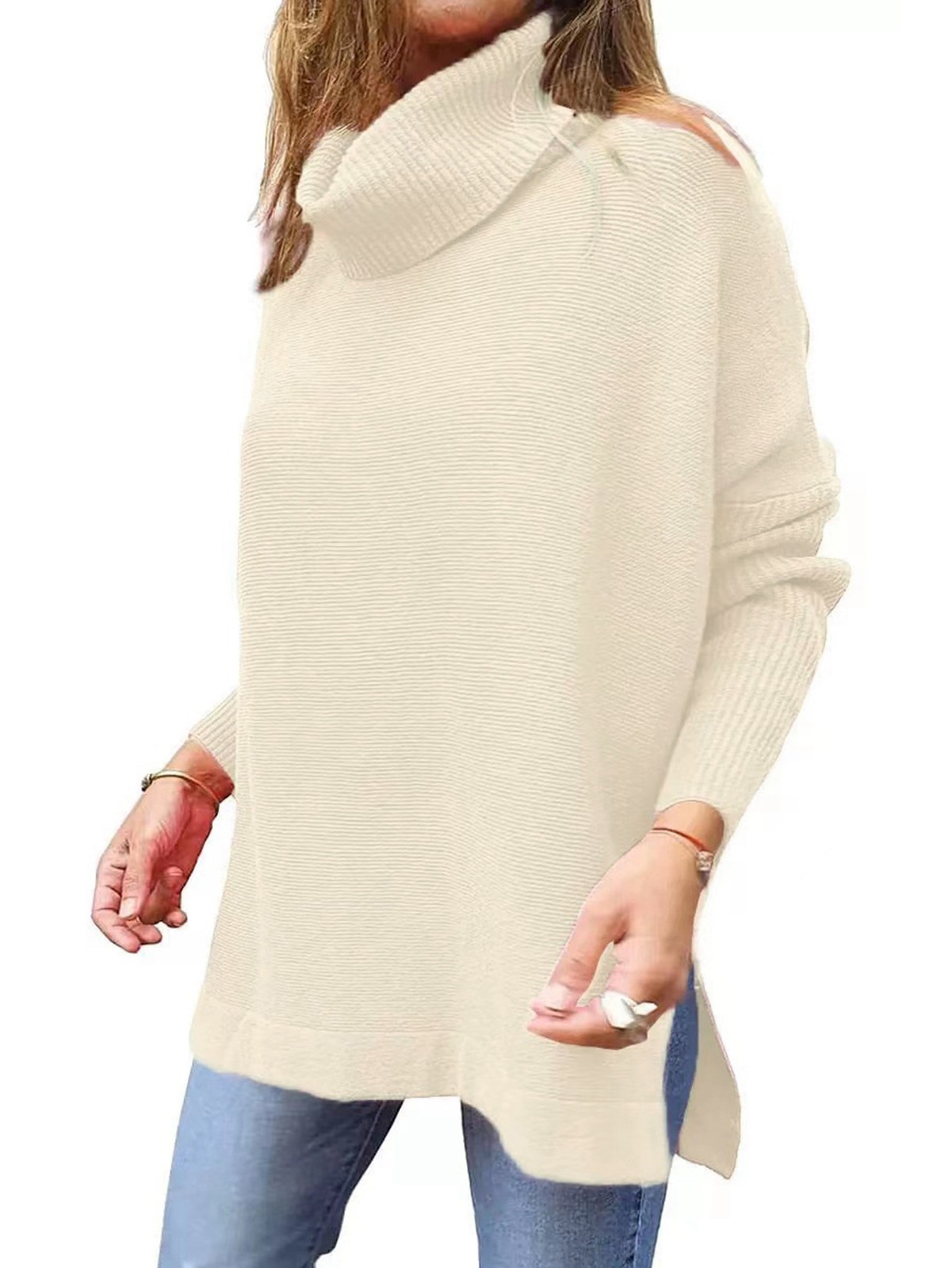 Women'S Turtle-Neck Oversized Sweaters Long Batwing Sleeve Spilt Hem Tunic4931