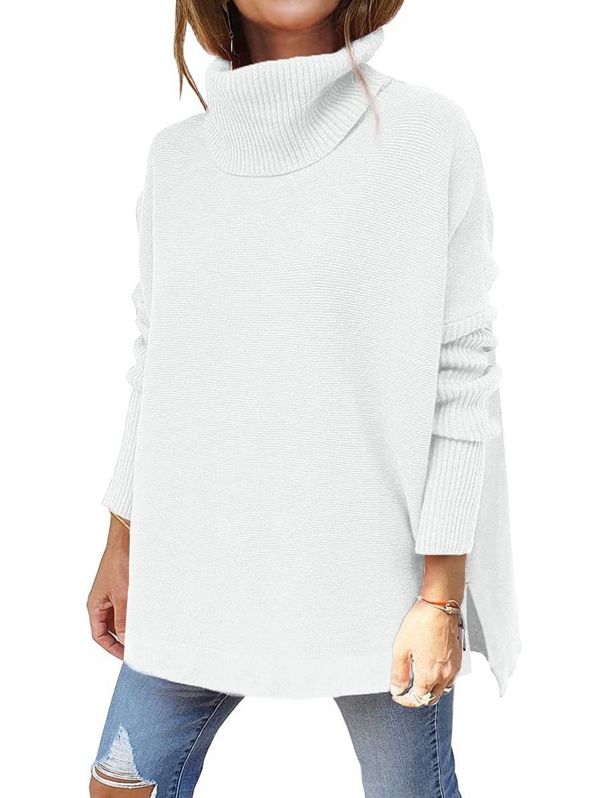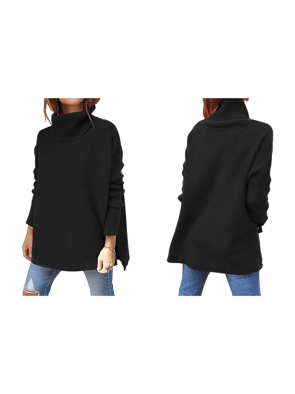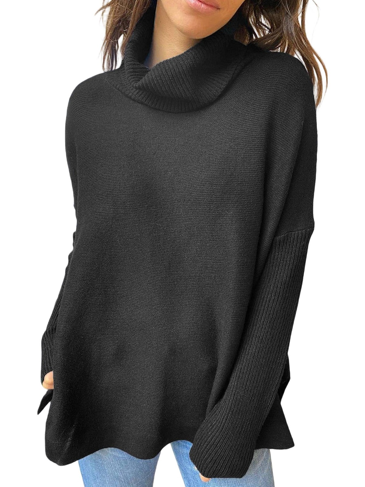 Women'S Turtle-Neck Oversized Sweaters Long Batwing Sleeve Spilt Hem Tunic3548