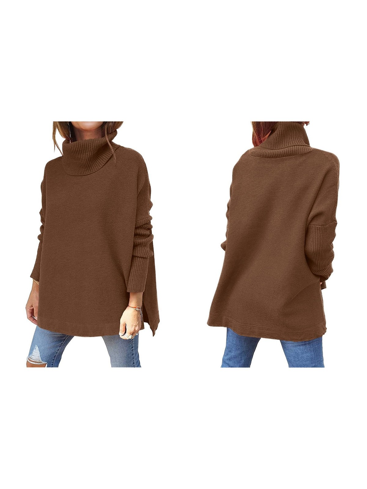 Women'S Turtle-Neck Oversized Sweaters Long Batwing Sleeve Spilt Hem Tunic5862